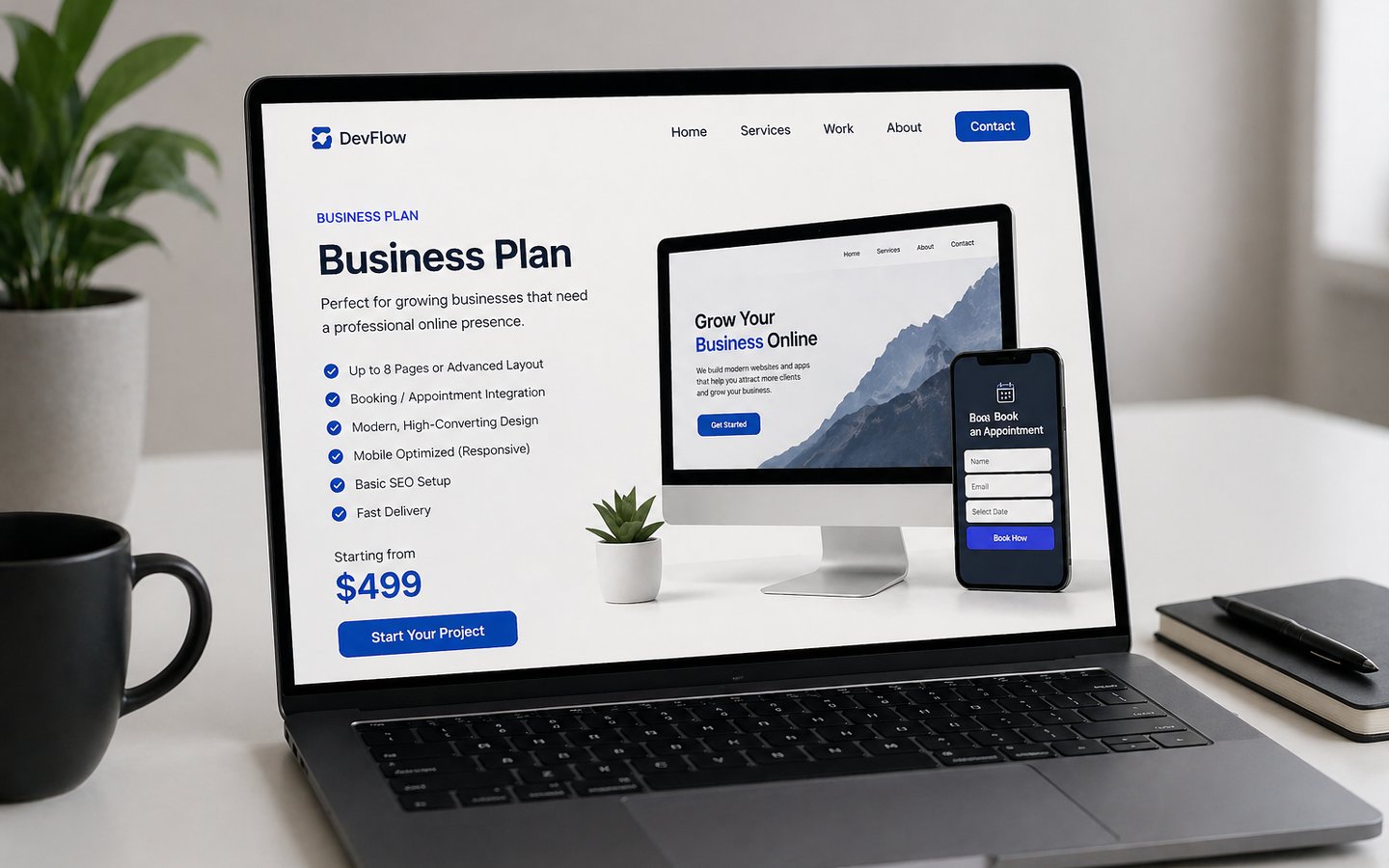 Perfect for growing businesses that need a professional online presence. We build modern websites or apps designed to attract clients, automate processes, and help your business scale.